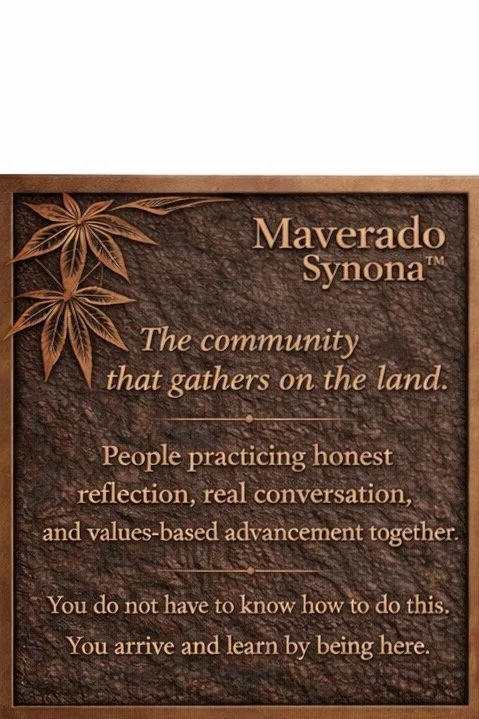 Maverado Synona™ is where you learn how to live as a whole human in a fractured world. MaveradoSynona™ is where win-win capable people gather to live that way on purpose. You arrive already inclined toward fairness, responsibility, and shared advancement. Here, you refine that capacity in real time with others who hold themselves to the same standard.